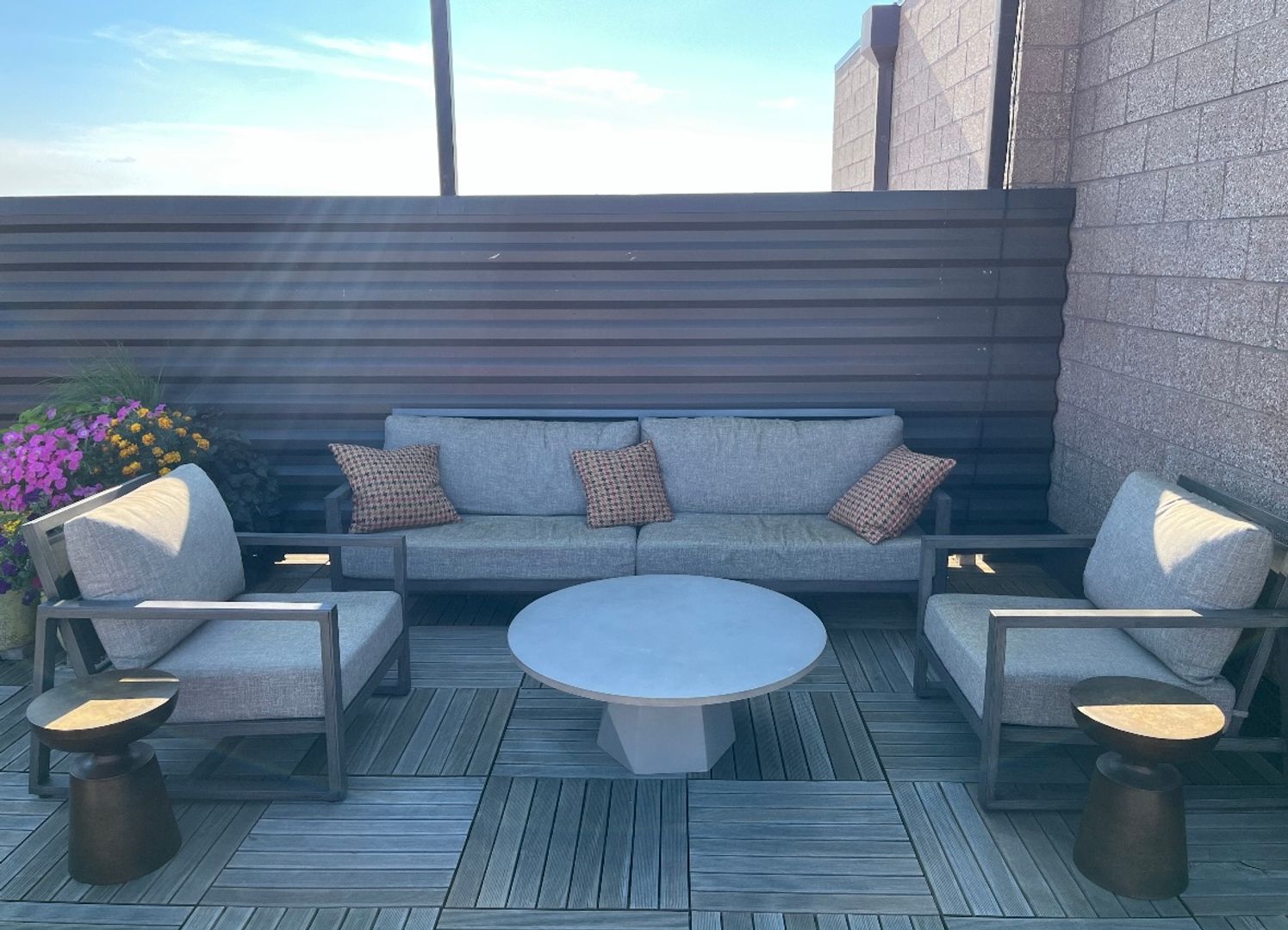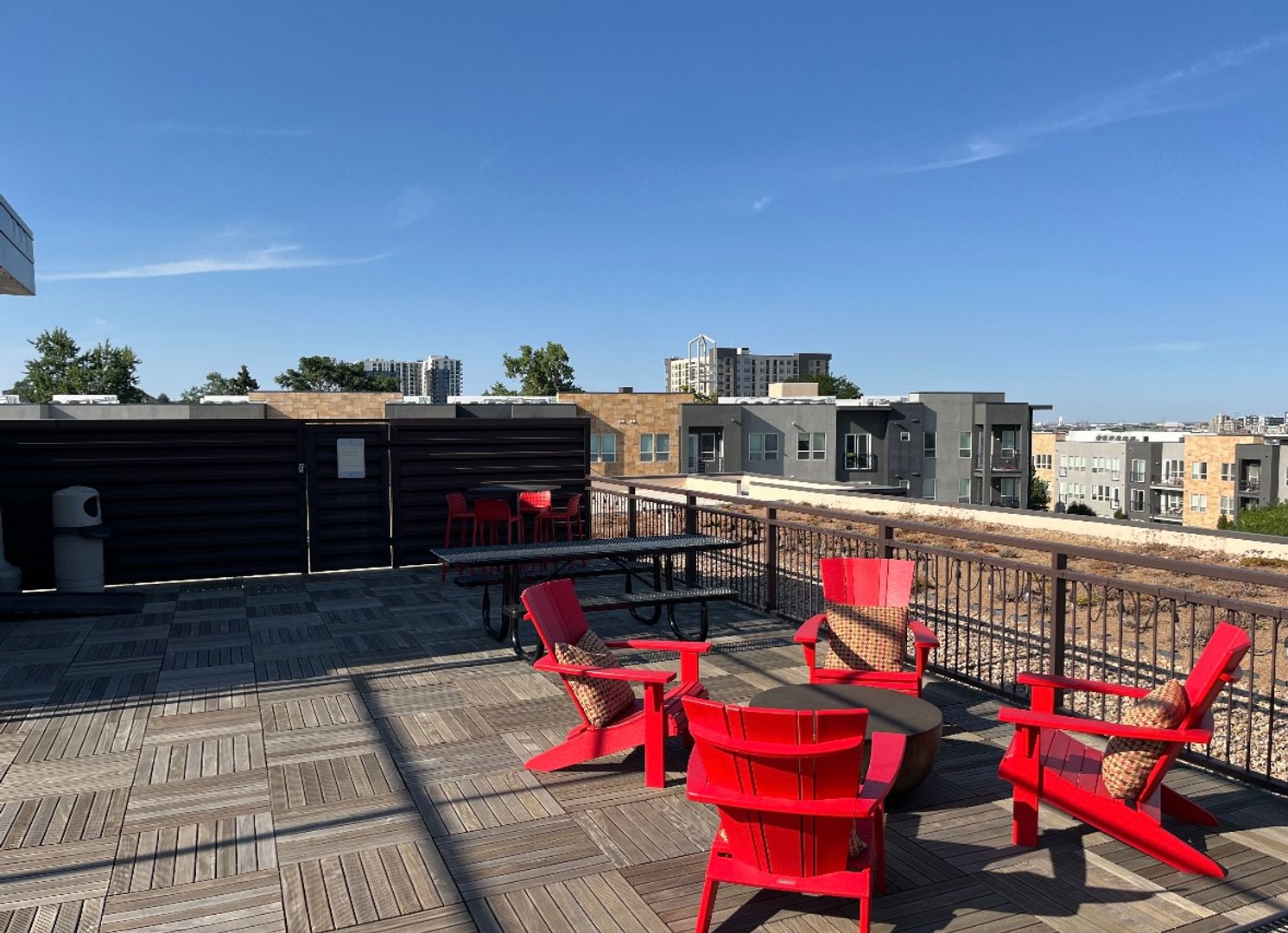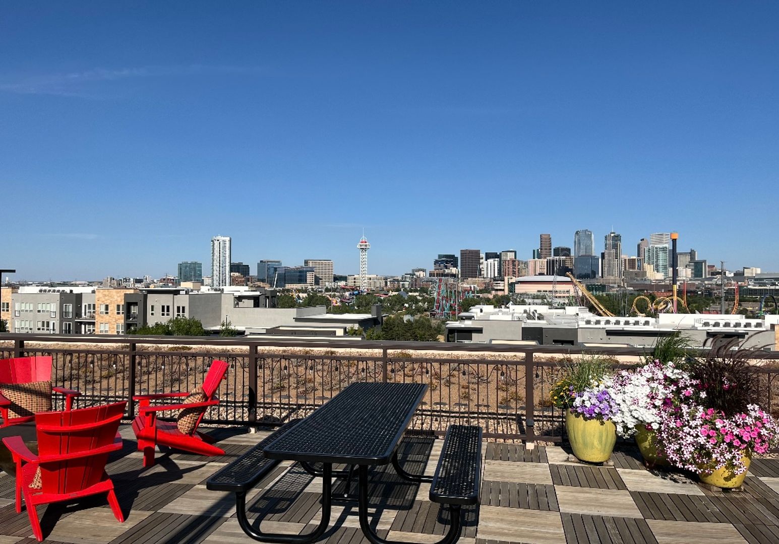 Access to a private rooftop deck with new patio furniture and excellent views of the city skyline and mountains
