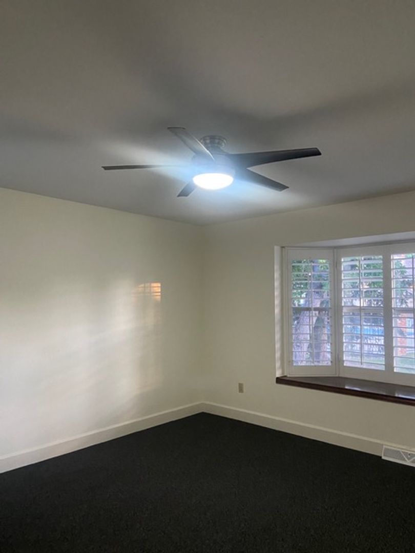 The spacious kitchen offers ample cabinet space, a pantry for extra storage, and comes fully equipped with a refrigerator, stove, microwave, dishwasher, and garbage disposal.